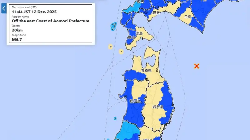 Its epicentre is off the eastern coast of Aomori Prefecture, according to the Japan Meteorological Agency (JMA)